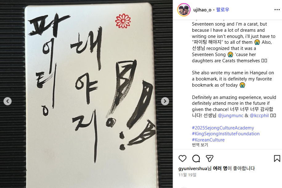 Philippines King Sejong Institute. Korean Cultural Center in Philippines Period2025.11.18 ~ 2025.11.20 https://www.instagram.com/p/DROeClzkntK/?igsh=MzEzcXhkbWw1bjl2&img_ind… Comment 0Comment Write Comment List There are no registered comments. Prev King Sejong Institute. Bandung 2 Next Embassy of the Republic of Korea in Uruguay List